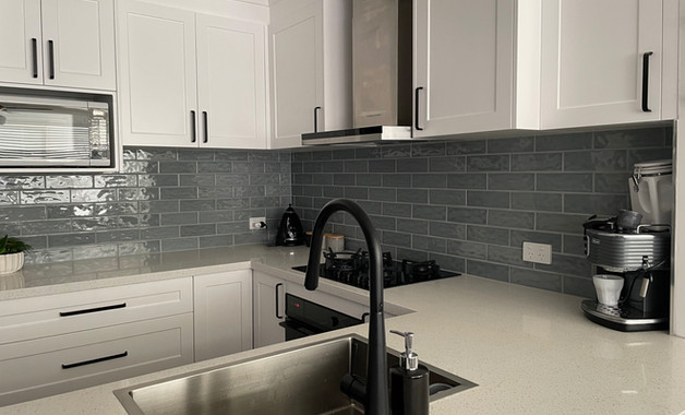 A clean, modern style Sydney bathroom remodel in white, black and gray